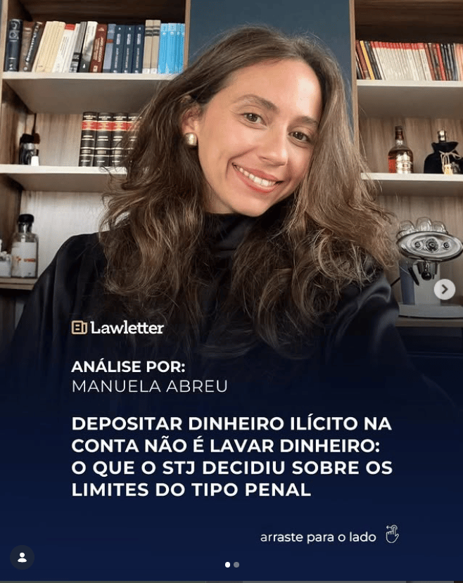 LL Insights: Portal Lawletter, "Depositar dinheiro ilícito na conta não é lavar dinheiro: o que o STJ decidiu sobre os limites do tipo penal", por Manuela Abreu, 17/04/2026.